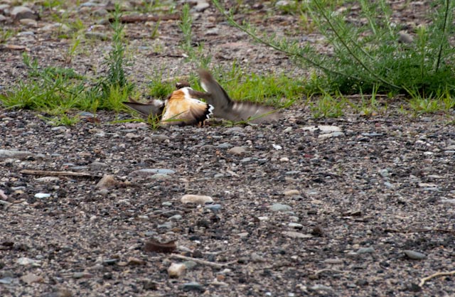 This Piping Plover was hit by some buckshot, or so it would have me believe. More like feigning a broken wing, as a diversionary tactic, because I must have been walking a little too close to its chicks. Eric and I actually saw the chicks yesterday. They looked like little brown cotton balls walking on tooth picks. Of course they hid, too well, when I returned with my camera today. I could not spot them for the life of me.