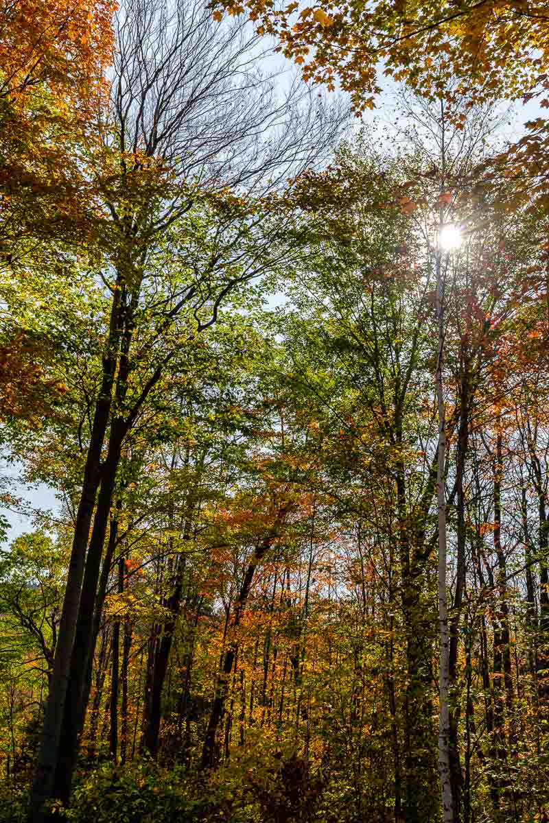 The goal was to find a leaf that’s a bit more upright than the rest. Then, getting low with the camera, keeping the leaf in focus, and shooting skyward. My new Sony 24-70GMII does much of the work. The hardest part is getting myself up off the ground again.