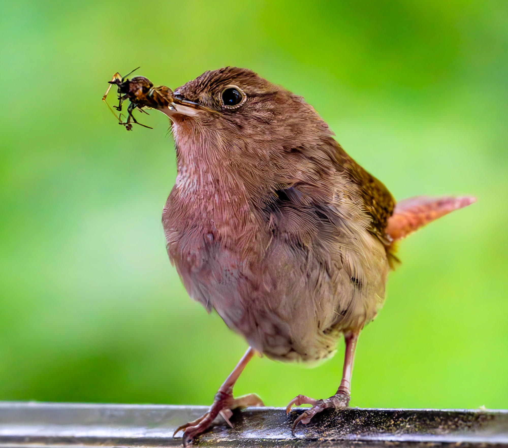 A house wren, I think. This tiny bird is a frequent visitor at my dad’s house, due in part to the bird hotel he setup on the back deck, under the roof. As we sit and eat our own lunch, we watch as the parents come and go, feeding their squawking babies in the hotel. After the babies are grown and gone, we’ll need to relocate the hotel; the deck is a frequent target of droppings. Photo was taken with a Sony 200-600mm lens and Sony A7r5.